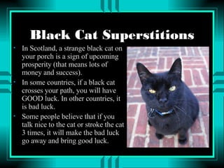 But in ancient cultures if a black cat crossed your path this was seen as a very good sign that wealth would. To those believing the myth left to right. In Scotland however a strange black cat appearing on your porch is a portent of prosperity.
